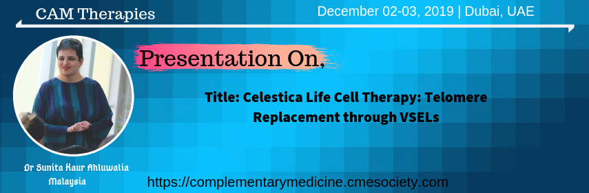 CAM Therapies 2019 takes pleasure in introducing our next speaker Dr.sunita kaur Ahluwalia #malaysia to give presentation on “Celestica Life Cell Therapy: Telomere Replacement through VSELs” If you would like to join this hashtag#congress, kindly follow this online registration link: https://bit.ly/2WyB9bL #camtherapies #alternativemedicine #naturalmedicine #regenerativemedicine #conference #naturopathy #homeopathymedicine #accupunture #complementary #herbalmedicine